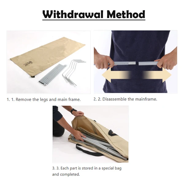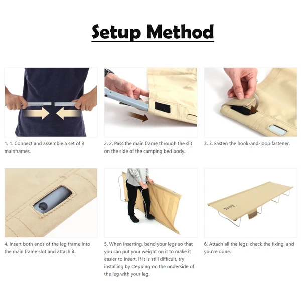 A spacious size that allows you to sleep well, and you can wake up refreshed. Wide size camping bed (cot).