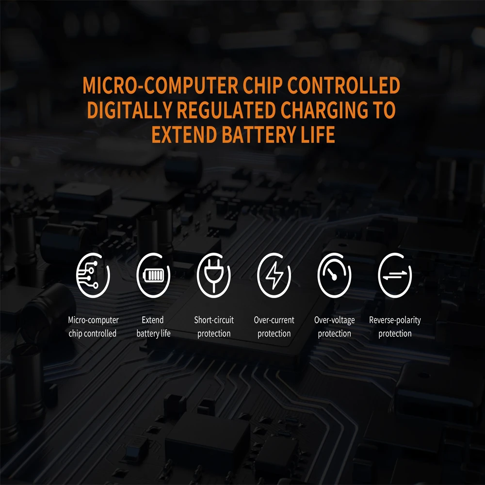 - Micro-computer chip digitally regulates charging for optimal battery life