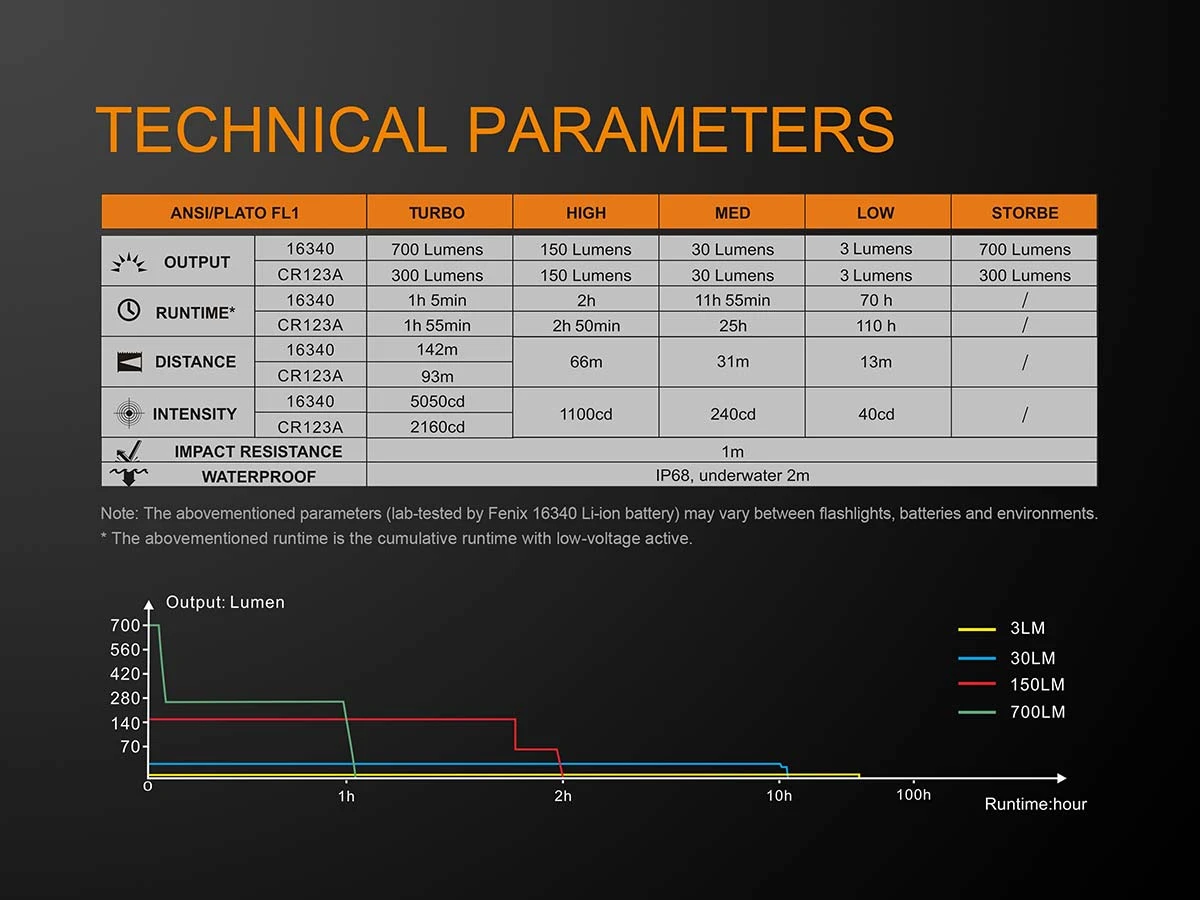 Fenix E16 XP-L Hi Neutral White LED Flashlight BLACK 700 Lumen