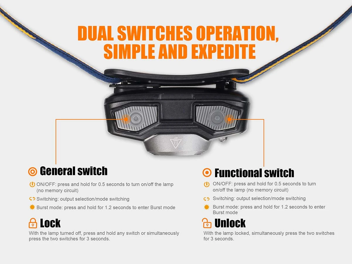 The Fenix HL32R rechargeable headlamp is the perfect headlamp for hiking and camping with a maximum 600 lumen burst for quick blasts of light and up to 200 hours of runtime for extended stays. Containing a built-in battery, this headlamp is USB rechargeable with a battery indicator so you’ll always know when charging is needed. Dual switches quickly control the six general lighting levels plus the red light/flashing and SOS functional modes. IP66 rating for rain proof/dust proof, plus the sweat-channeling headband, makes this a great option for bad weather outings.