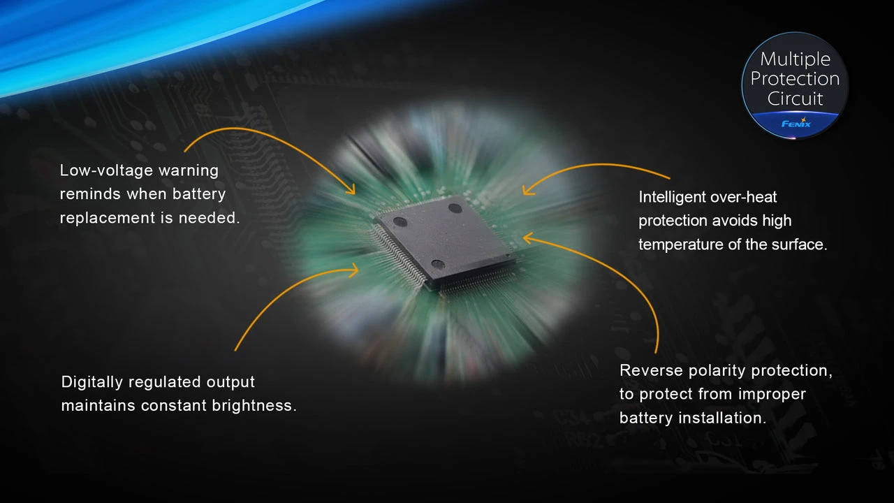 - Reverse polarity protection, to protect from improper battery installation