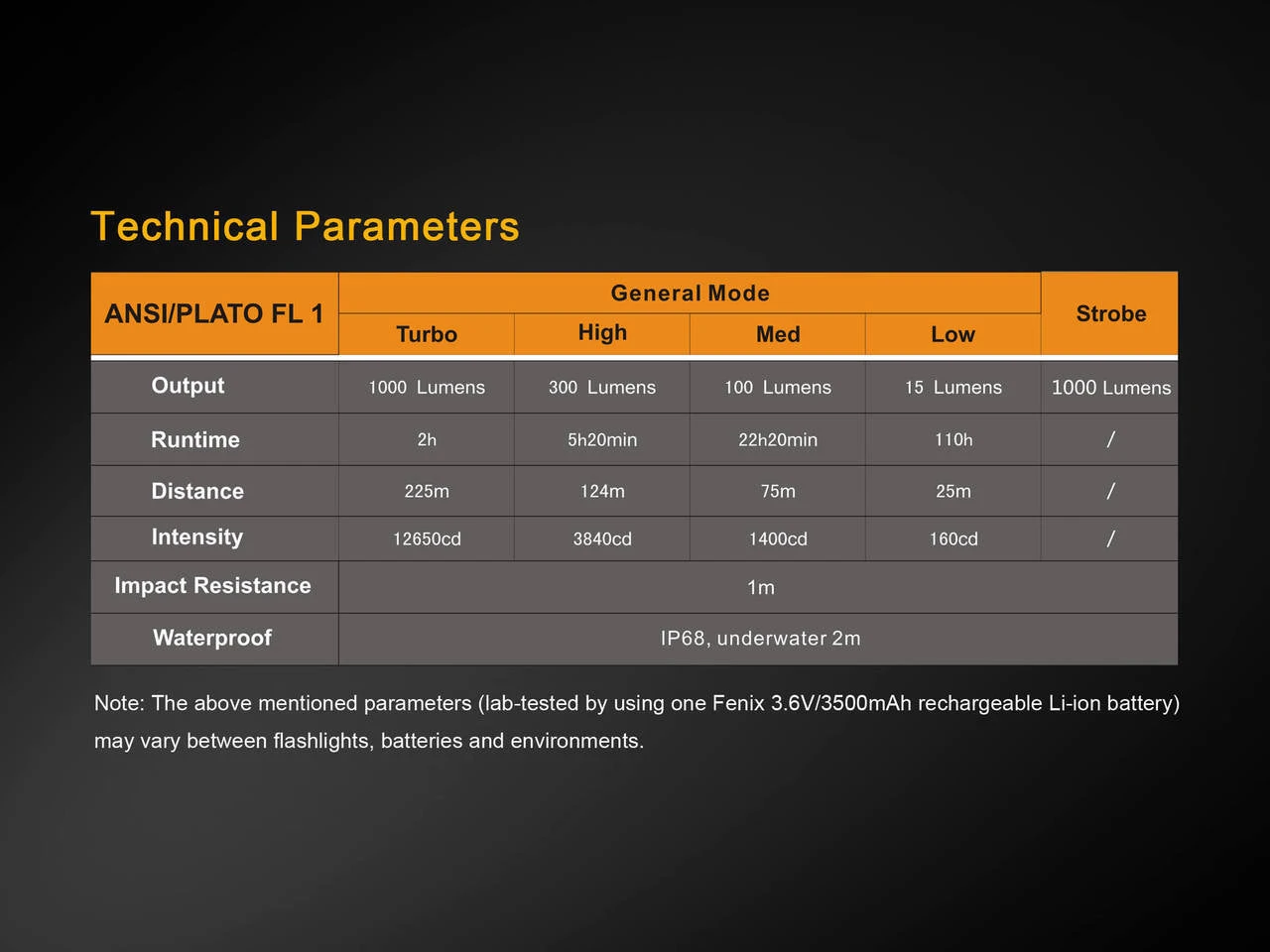 - 15 lumens (110 hours)