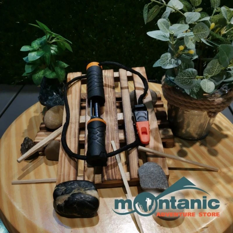 - Compact Fire Starter with ferrocerium rod and metal striker