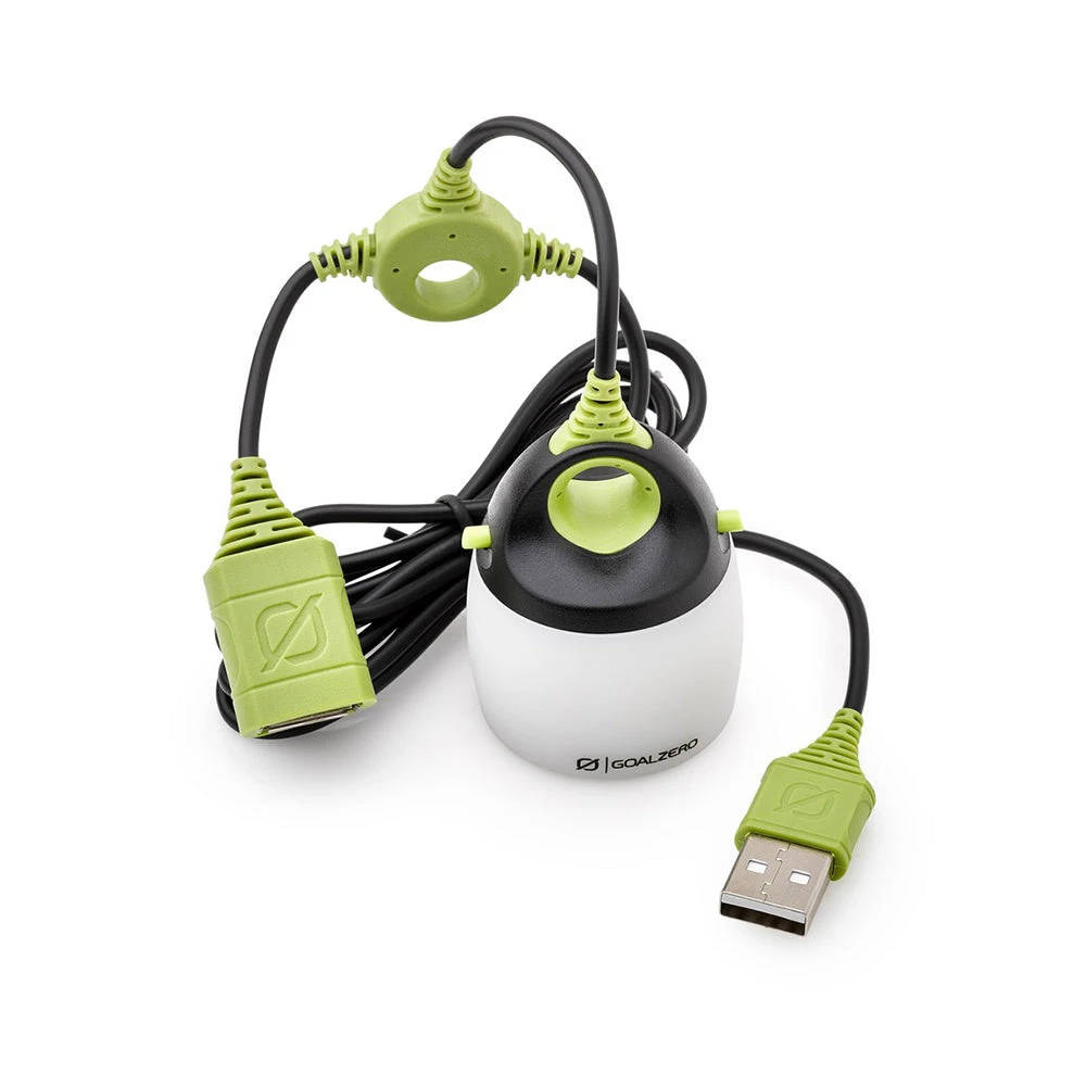 Bright mini USB light with 110 Lumens and collapsible diffuser for lantern or area light. Chainable LED light that pairs perfect with any Goal Zero recharger. Chainable with up to 4 lights. Carabiner included for hanging. Additional colored shades can be purchased to add mood lighting.