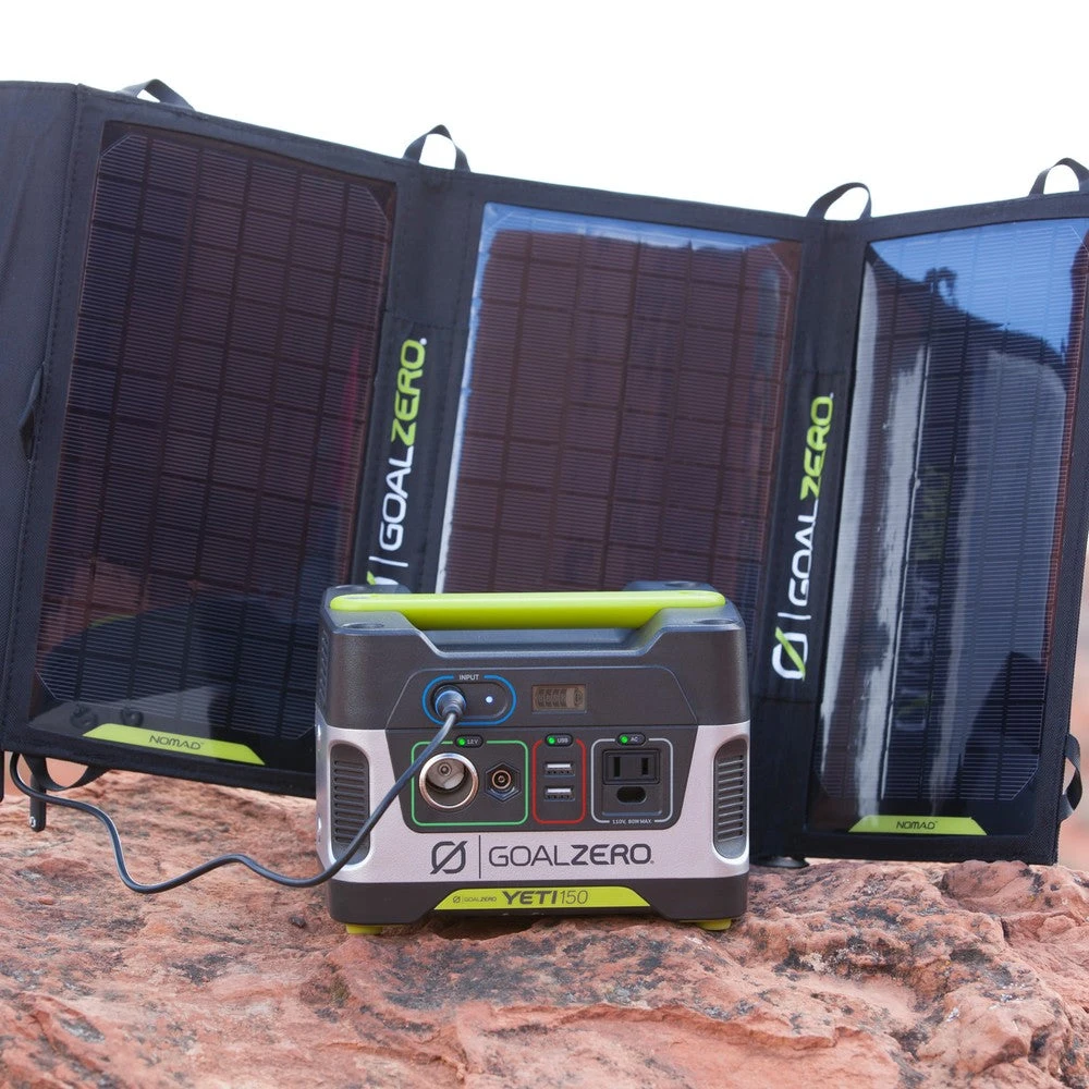 A small, all-in-one power bank designed to charge phones, tablets, small laptops, and more. It’s easily recharged by plugging into an outlet at home and pairs well with Goal Zero’s line of rugged solar panels for an on-the-go solution