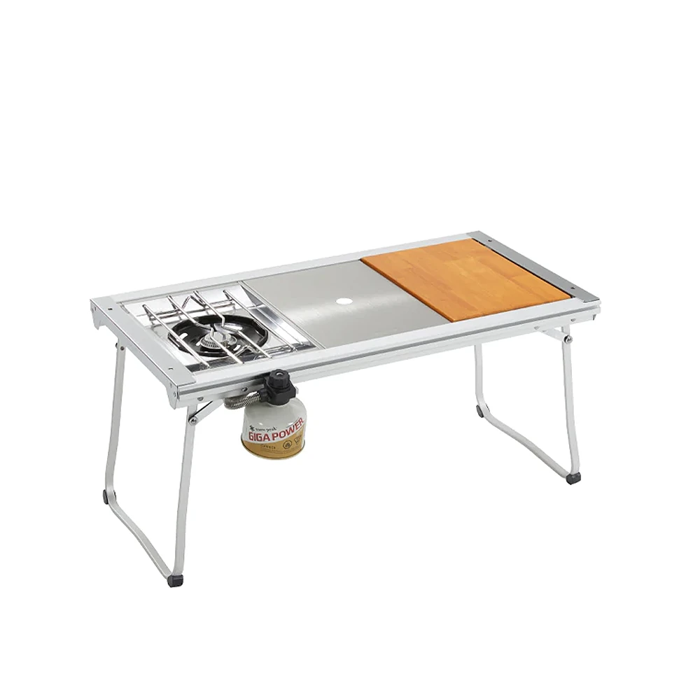 Designed in Japan, the laminated wood Entry IGT Table is for those beginning their camp kitchen customization. Use the Entry IGT Table at home or outside for a low height cooking and dining space. Add preferred inserts into the three units of space or simply use with the included wood surfaces as a standalone table. The Entry IGT Table features foldable legs for compact storage. Pair the Entry IGT Table with the Red Folding Chair or Low Beach Chair.