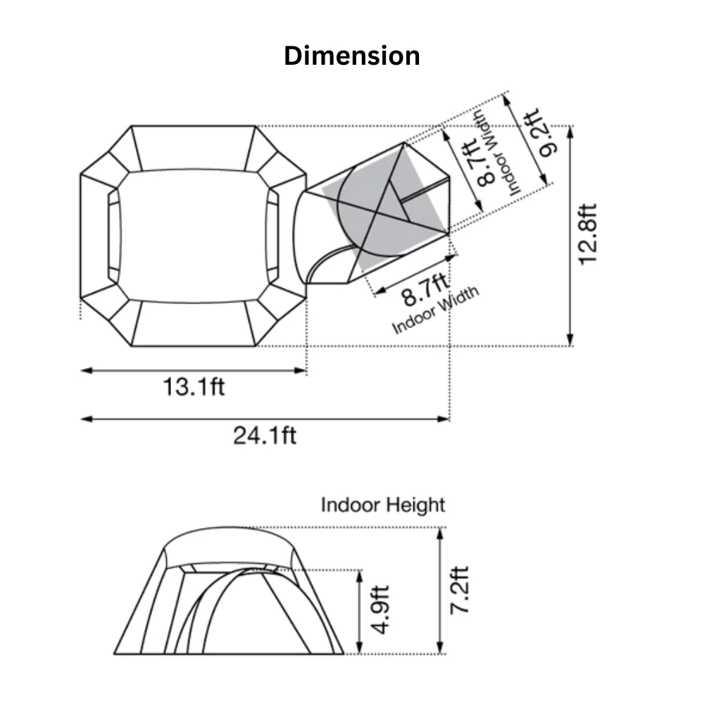 - Inner Tent: 68D Polyester, Bottom: 210D Polyester Ox, PU Coating 1,800mm