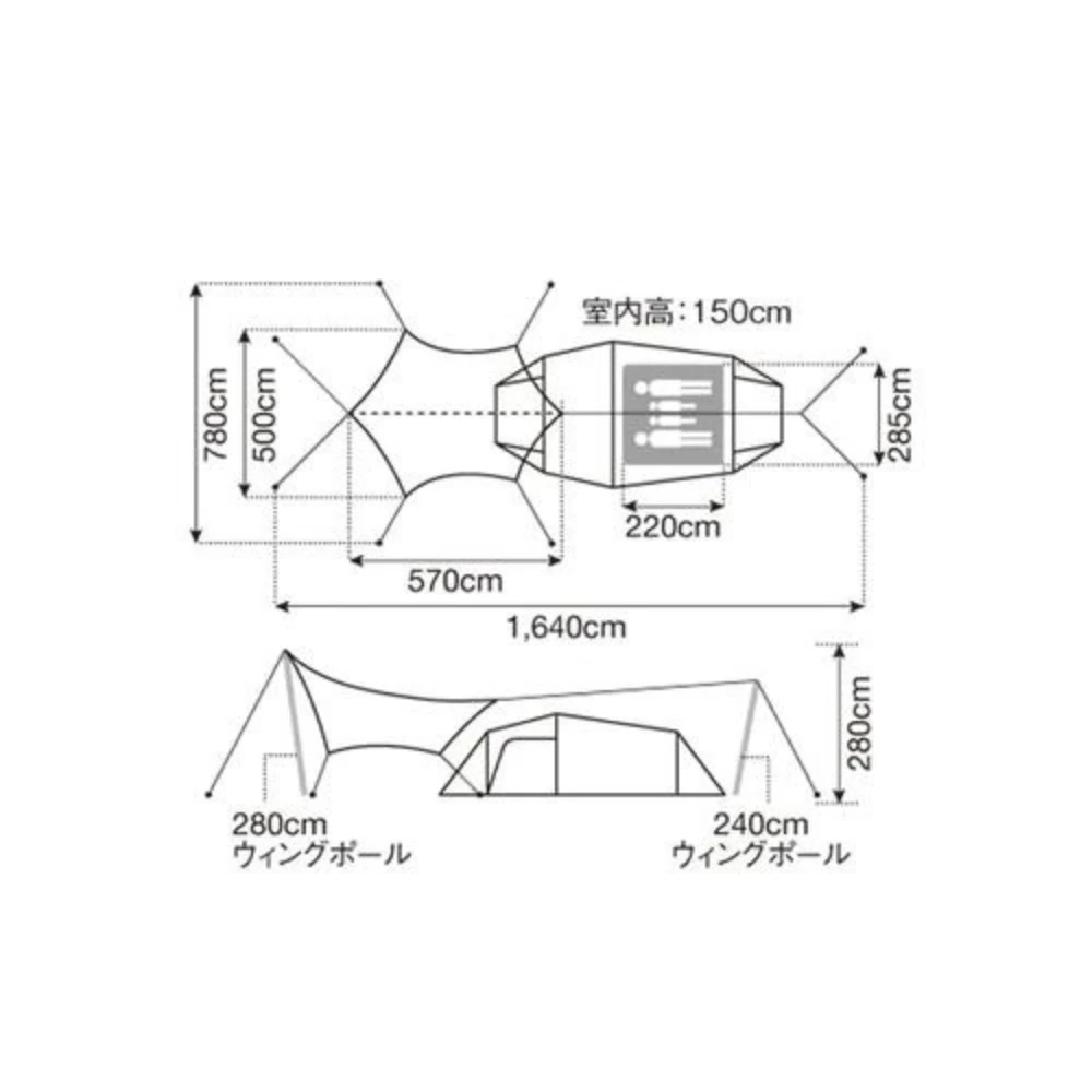 • Tent: 75D Polyester Taffeta, PU Coating 1,800mm, Teflon Processing, UV Processing