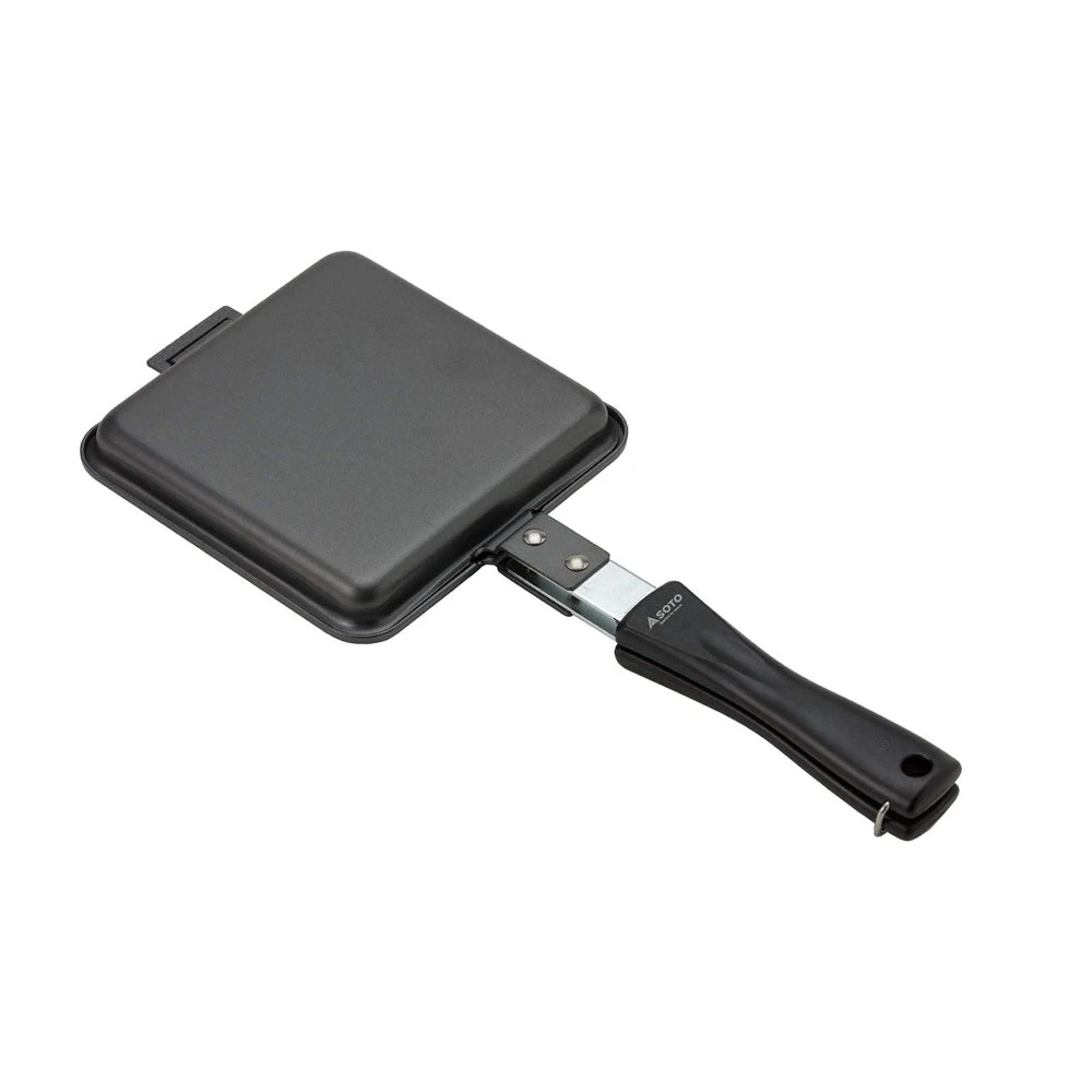 This toaster pan has a rust-resistant nitride finish. You can easily make original hot sand in the outdoors or at home. Includes original hot sand recipe book in a box for more ideas dish to cook. Since it can be baked while sandwiched, it can be burned on both sides without mistaking. To cook more dish at one time, you can just remove the hook and use it as 2 pans. Compatible with all heat sources.