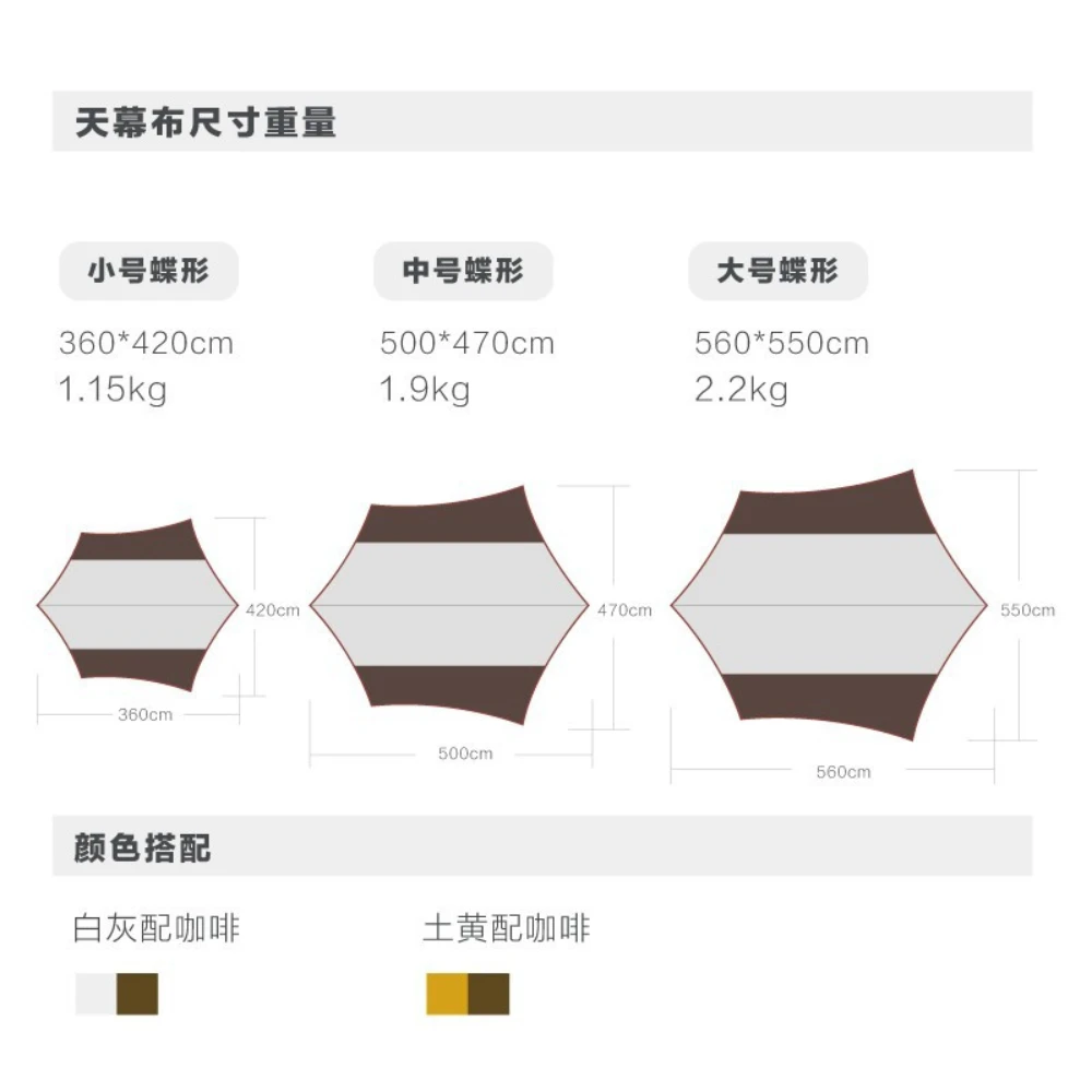 This Vidalido Butterfly Canopy adopts three-piece splicing design, and the overall line is smooth and beautiful. The Back line of the canopy and the side wings that extend left and right, this structure maintains the strength of the tarpaulin even when the tarpaulin is hit, resulting in a a beautiful sihouette.